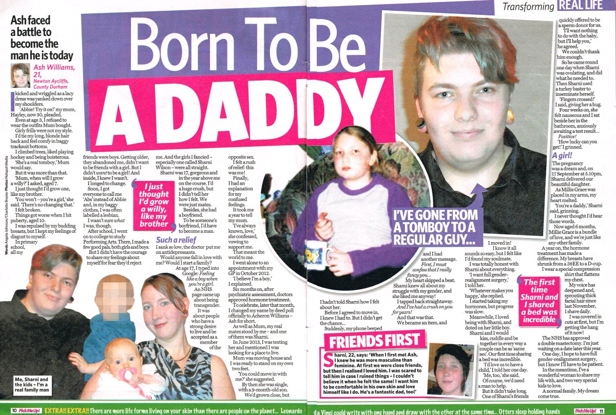 Ash was born a girl named Abbie and spent years fighting with his identity. After Googling ‘Feeling like a boy when you’re a girl’, he realised that he had been born in the wrong body and started his journey to become a man. Now happily loved-up with girlfriend Sharni and their adorable baby daughter, he’s finally the daddy he’s always dreamed of being.