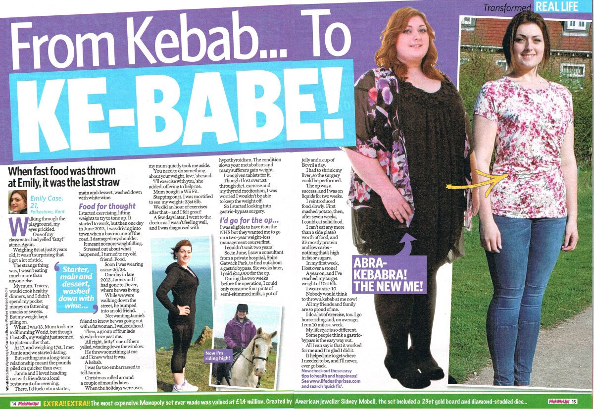 Gorgeous Emily lost a massive 13st after a cruel gang of boys shouted ‘Oi, fatty’ and launched a kebab at her. Now a size 10, she’s happier than ever.