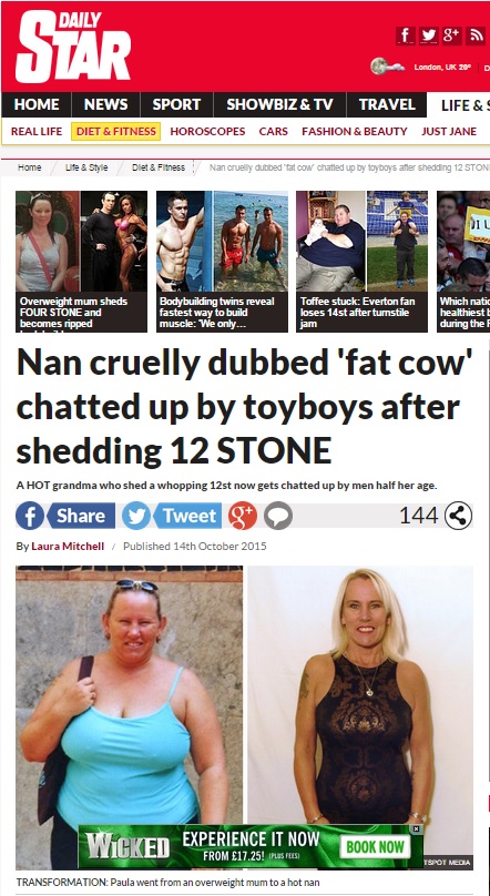 Grandma-of-one Paula Howson was once called a ‘fat cow’ by men, but after losing 12st she gets chatted up by guys half her age! Luckily hubby Peter can laugh it off and says he’s proud to have such a stunning wife.