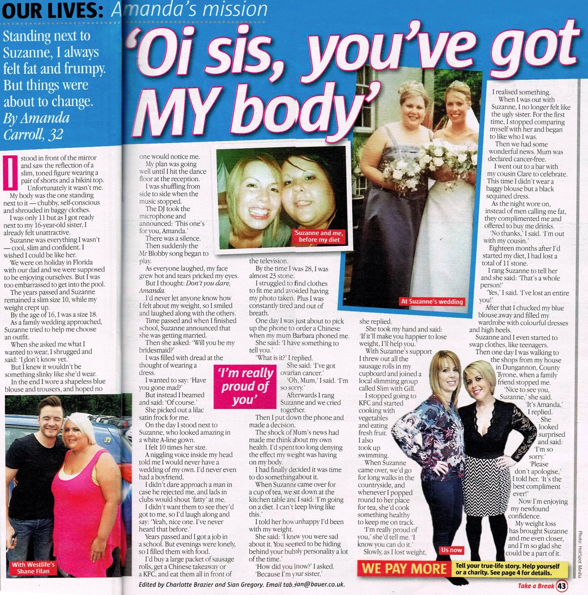 Amanda had always admired her slim sister, Suzanne. The two were inseparable, but at 23 stone and a size 28, Amanda always felt like the ugly sibling. Men called her ‘fatty’, and a DJ dedicated the Mr Blobby song to her at a family party. But after their mum was diagnosed with cancer, Amanda realised she was putting her health at risk and made the decision to lose weight. With her sister’s support, she cut back on snacks and went on long country walks. Eighteen months later, she’s shed an incredible 11st and her and Suzanne are closer than ever. In fact, people even get them mixed up!